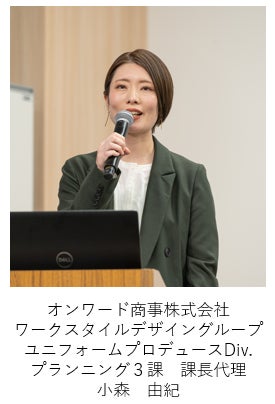 In addition, Ms. Yuki Komori from Onward Shoji talked about the challenges faced by the fashion and medical welfare industries and the products of this project.